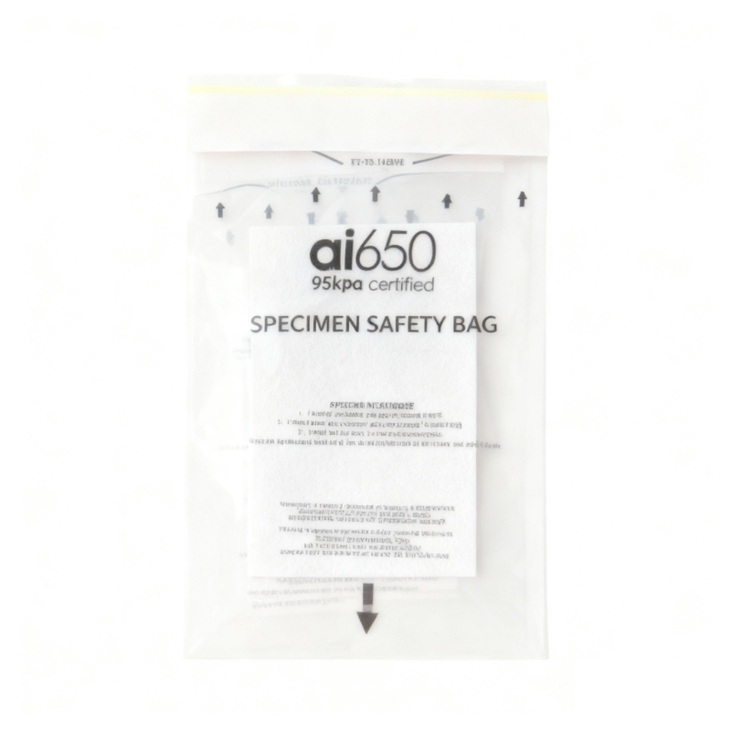 Bolsa de segurança para amostras com certificação 95 kPa, também conhecida como Bolsa de Pressão 95 kPa ou um modelo específico como a Bolsa de Segurança para Amostras AI650. Trata-se de uma peça essencial de embalagem secundária de segurança, projetada especificamente para uso em laboratórios clínicos, instalações de saúde e na indústria de biotecnologia, para o armazenamento e transporte seguros e em conformidade com as normas de segurança de substâncias biológicas (por exemplo, amostras para diagnóstico, sangue, urina, amostras de tecido, etc.).